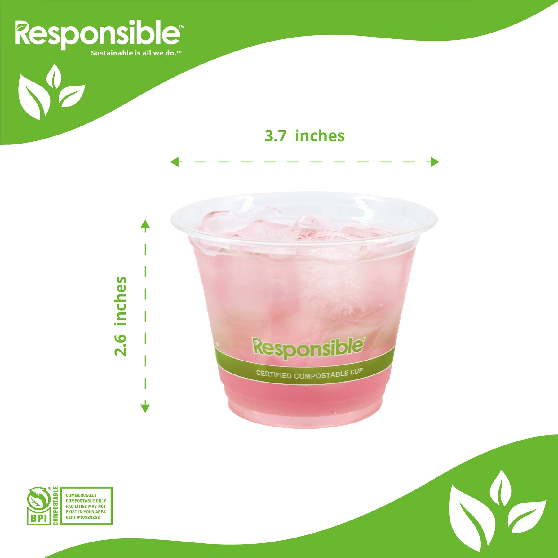 Responsible Products cold clear cups are eco-friendly, made from renewable and compostable materials. Ideal for cold drink, these clear cups are compostable, durable, and soak proof. Our clear cups are the most sustainable choice for serving smoothies, iced coffee and tea, beer or any other cold beverage at special events, catered events, takeout restaurants, cafeterias, and cafes.