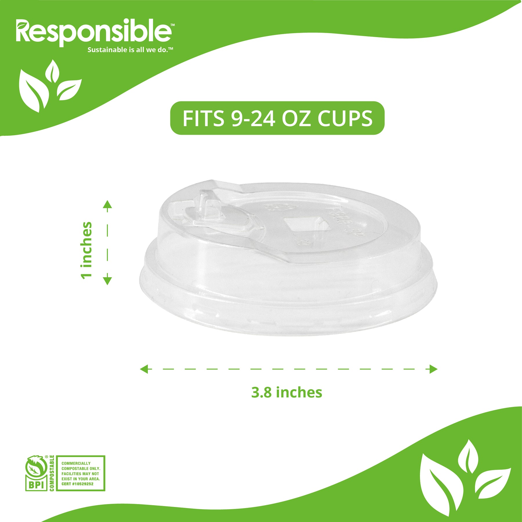 Responsible Products clear cup lids are eco-friendly, made from renewable and compostable materials. Ideal for cold drink, these clear cup lids are compostable, durable, and soak proof. Our clear cup lids are the sustainable choice for serving smoothies, iced coffee, beer or any other cold beverage at special events, catered events, takeout restaurants, cafeterias, and cafes.
