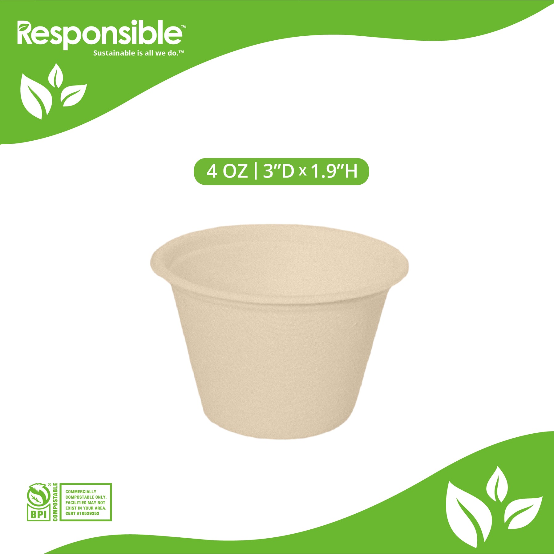 4 oz Portion Cup | Tree-Less™ Compostable Molded Fiber