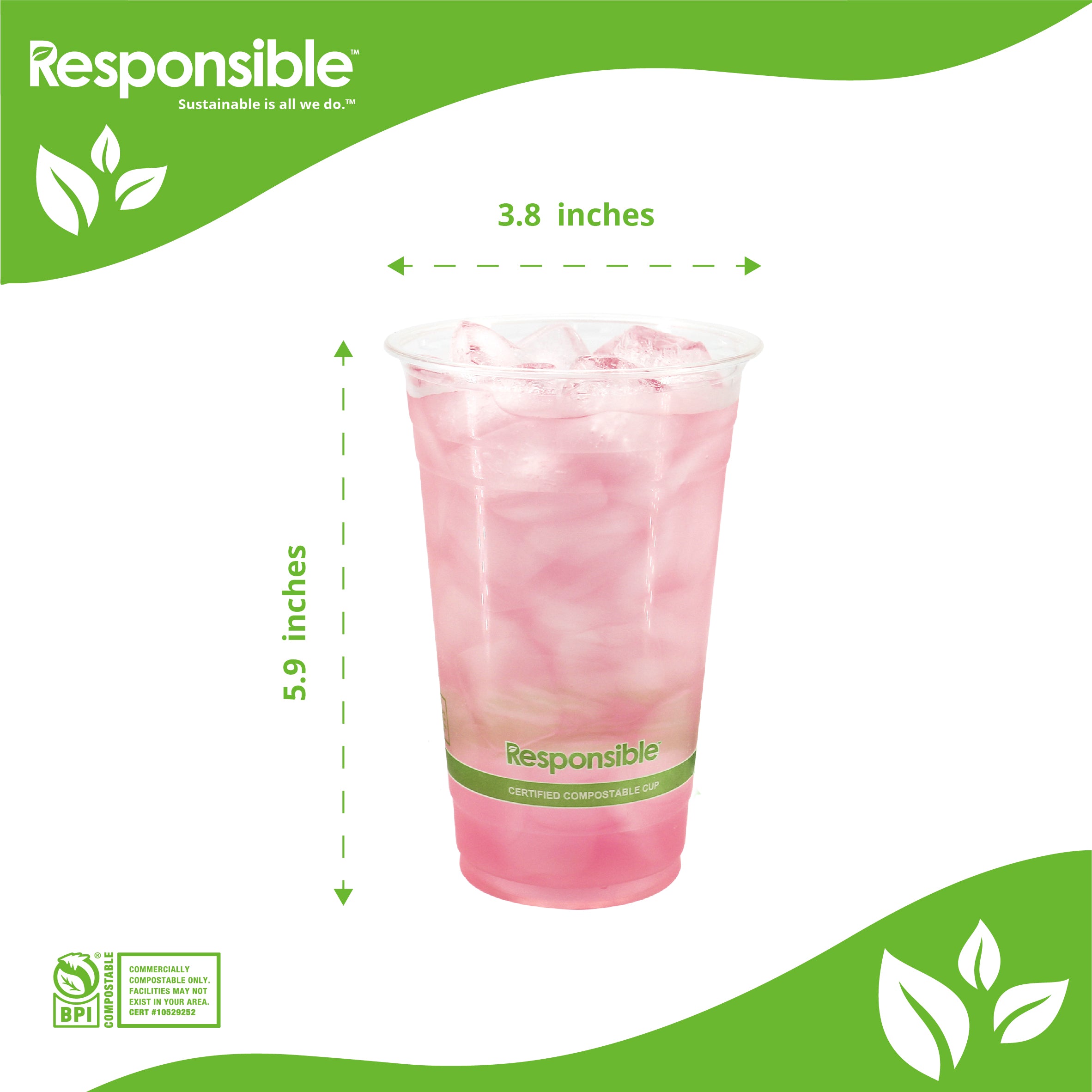Responsible Products cold clear cups are eco-friendly, made from renewable and compostable materials. Ideal for cold drink, these clear cups are compostable, durable, and soak proof. Our clear cups are the sustainable choice for serving smoothies, iced coffee, beer or any other cold beverage at special events, catered events, takeout restaurants, cafeterias, and cafes.